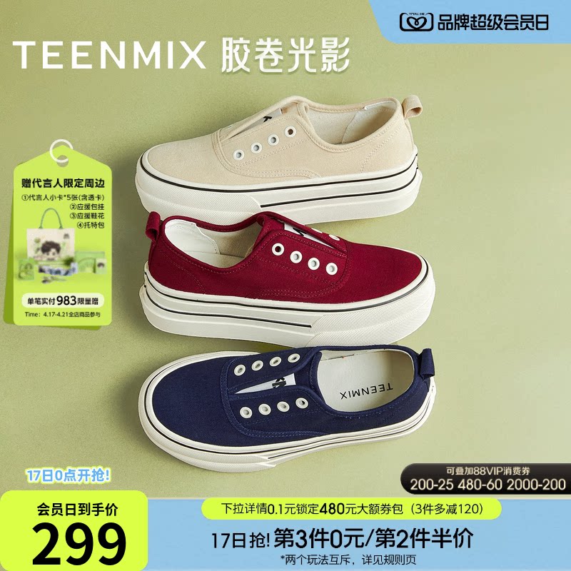 百丽航海家厚底增高小白帆布鞋女26免系带一脚蹬休闲鞋子B3037A