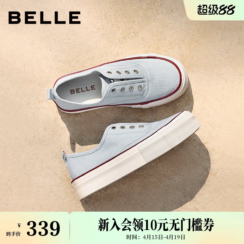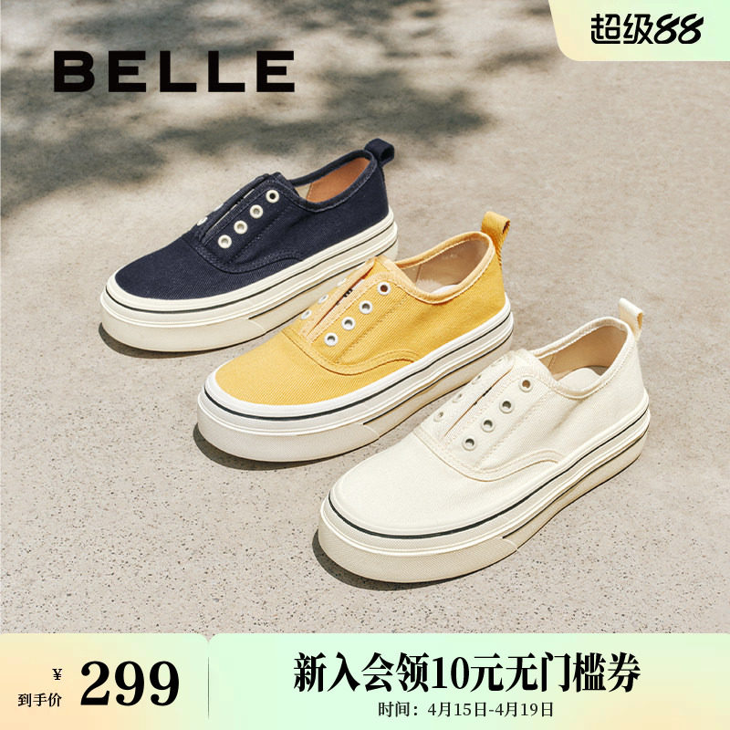 百丽航海家帆布鞋厚底一脚蹬懒人鞋新款百搭休闲小白女鞋B2699C预
