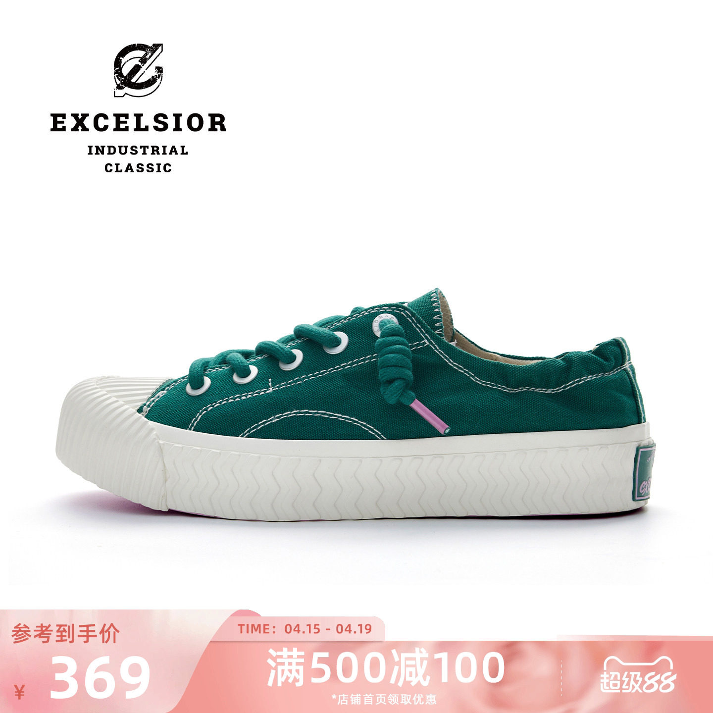【双马尾系列】excelsior饼干鞋官方 绿色一脚蹬女鞋厚底帆布鞋