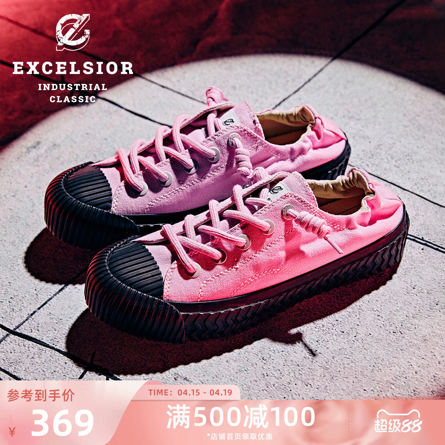 【双马尾系列】excelsior饼干鞋 夏季粉色厚底板鞋一脚蹬帆布鞋女