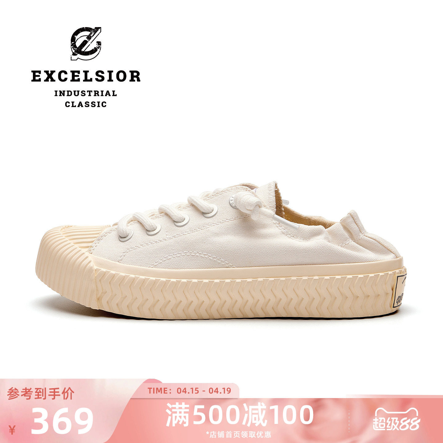 【双马尾系列】excelsior饼干鞋官方 厚底小白鞋女一脚蹬帆布鞋男