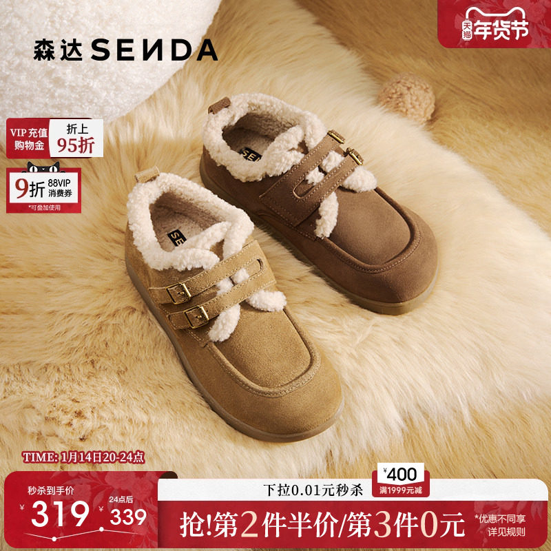 森达毛毛鞋女2025冬季新款舒适保暖平底户外休闲鞋ZTI23DM5