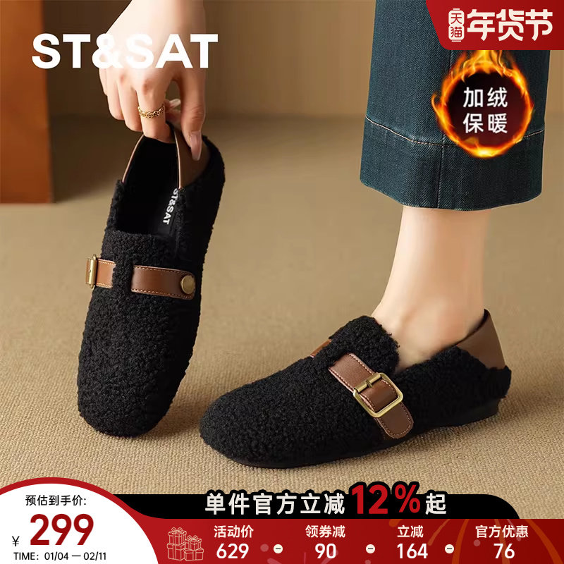 星期六毛毛鞋女款冬季加绒保暖2025新款乐福女鞋平底棉鞋豆豆鞋子