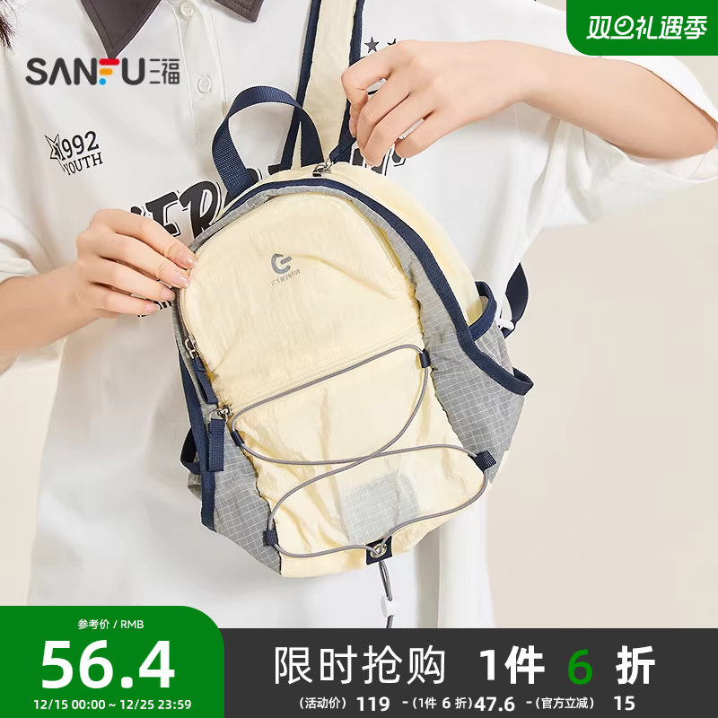 三福背包夏季学院运动风轻户外机能双肩包尼龙包女包502400