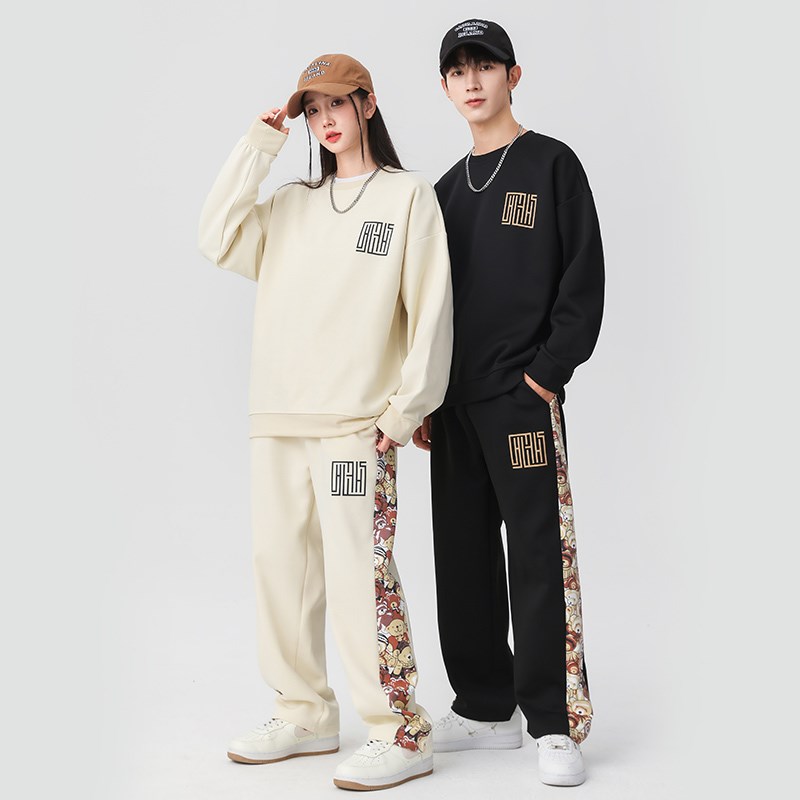运动套装男秋季潮牌宽松休闲百搭圆领卫衣一套搭配春秋情侣装上衣