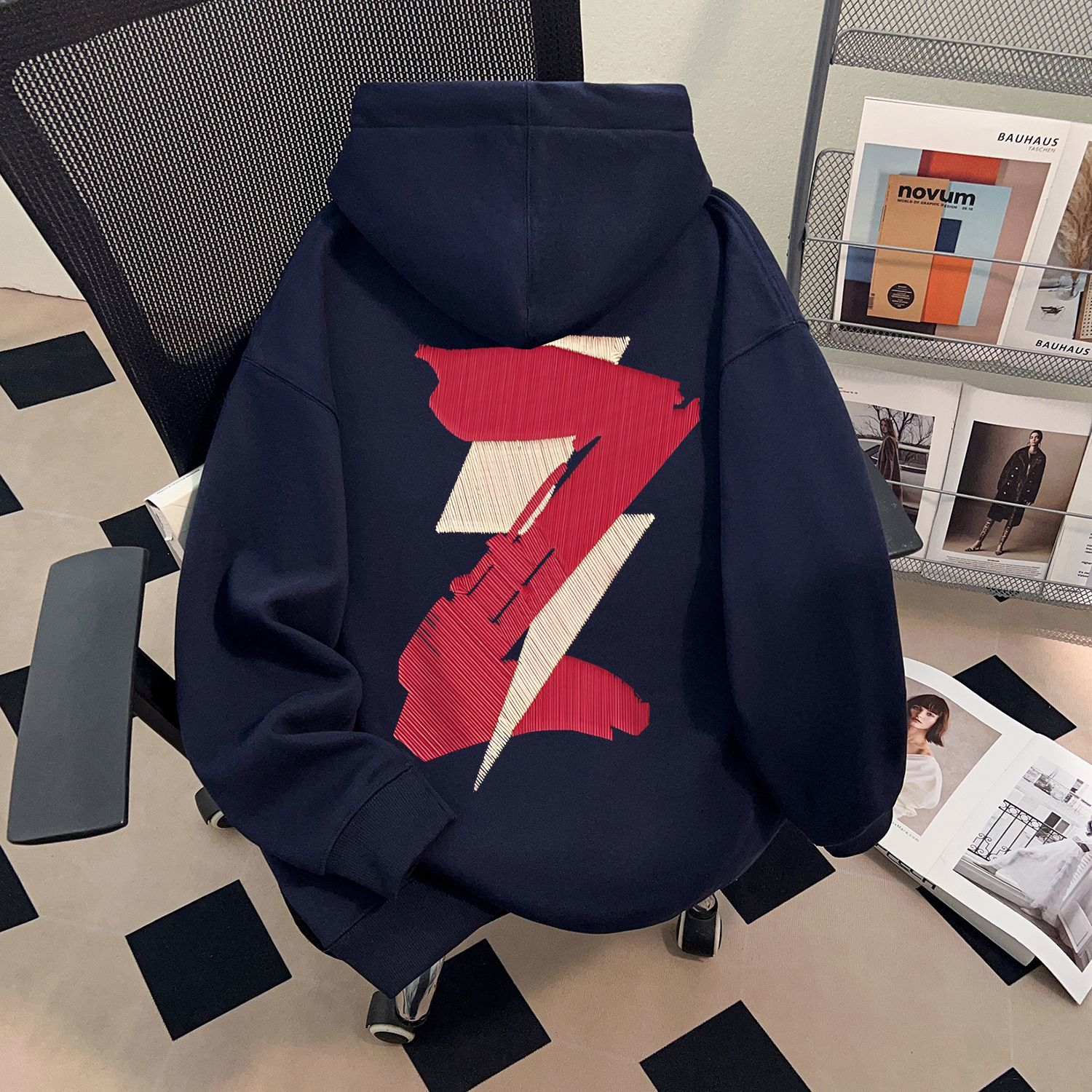 超大码300斤美式复古复古刺绣字母连帽卫衣男女春秋情侣装外套潮2