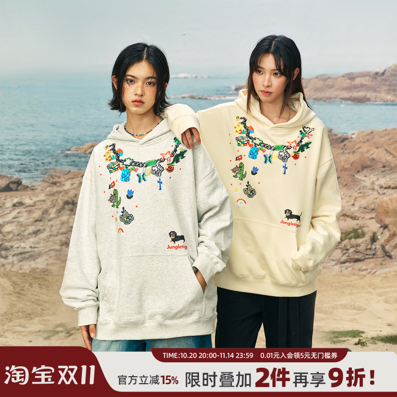 100%不起球纯棉卫衣男女同款刺绣连帽宽松春秋情侣装帽衫休闲外套
