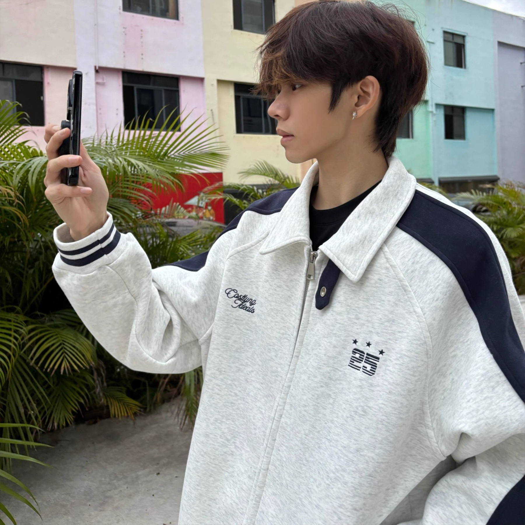 lemanism美式运动开衫插肩袖立领外套男2025春秋情侣装粉色夹克女