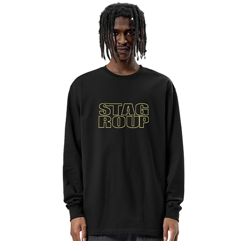 STA国潮美式英文交错排版印花长袖T恤男女春秋情侣装休闲打底衫