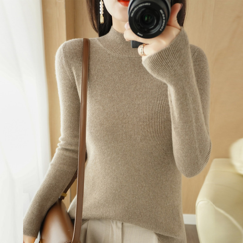 SLIVER3206羊毛亲肤柔糯半高领弹力打底针织衫女修身简约内搭ins