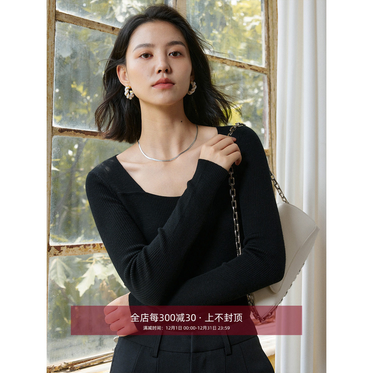 殳十原创设计 圆领针织打底衫长袖软糯春秋冬修身纯色毛衣套头女