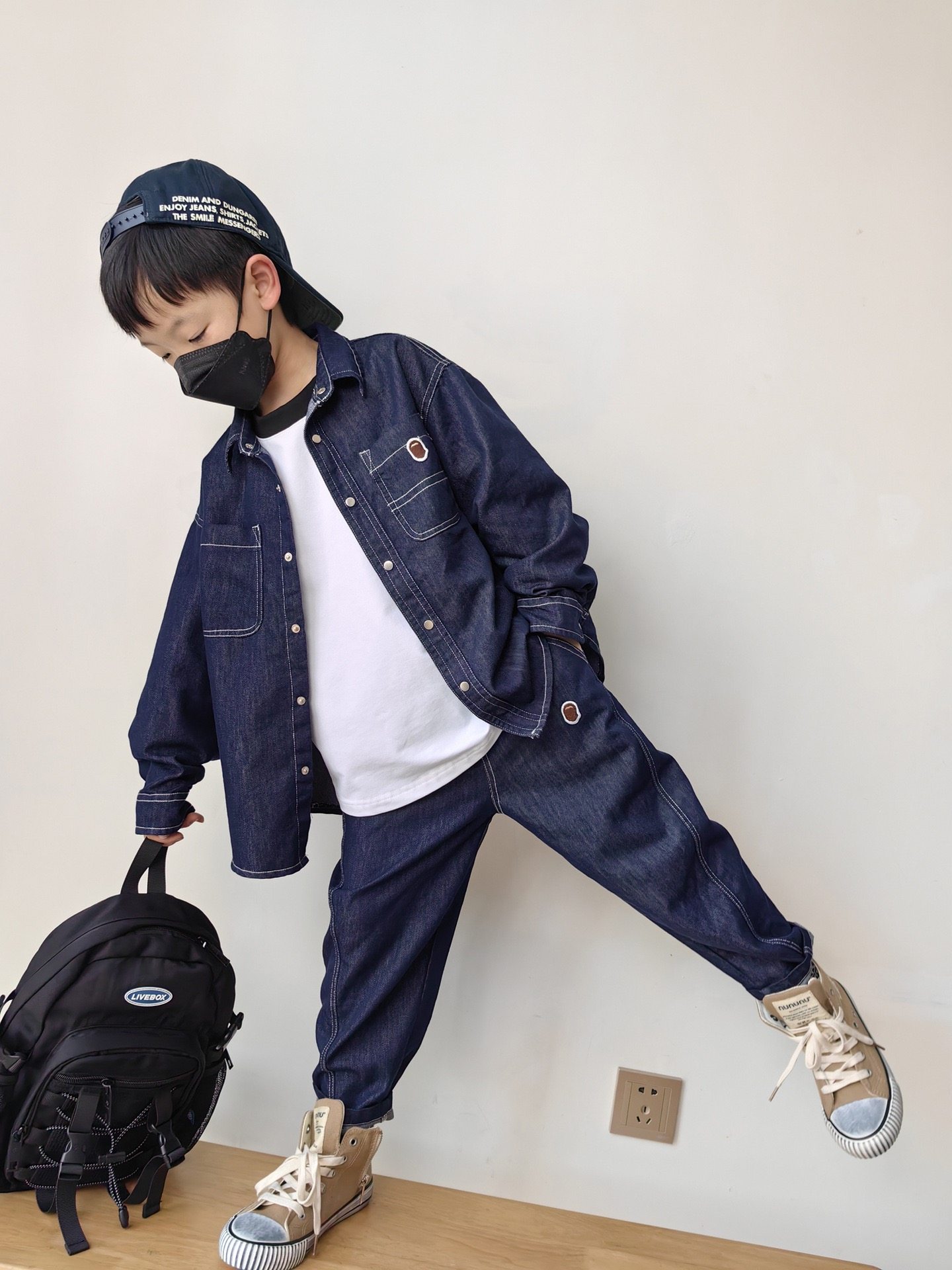 街舞儿童潮服hiphop嘻哈男童仿牛仔衬衫套装表演服少儿元旦演出服