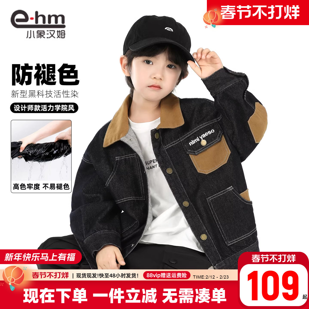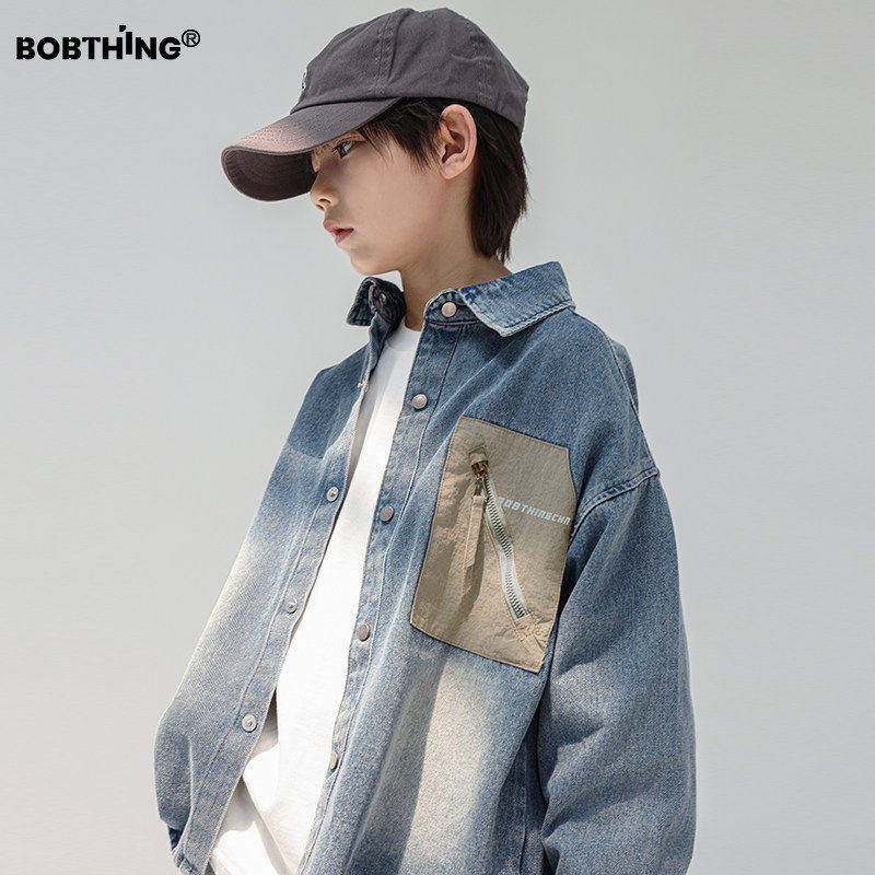 小象汉姆童装男童牛仔外套防褪色2026春季新款儿童衬衫男孩开衫潮