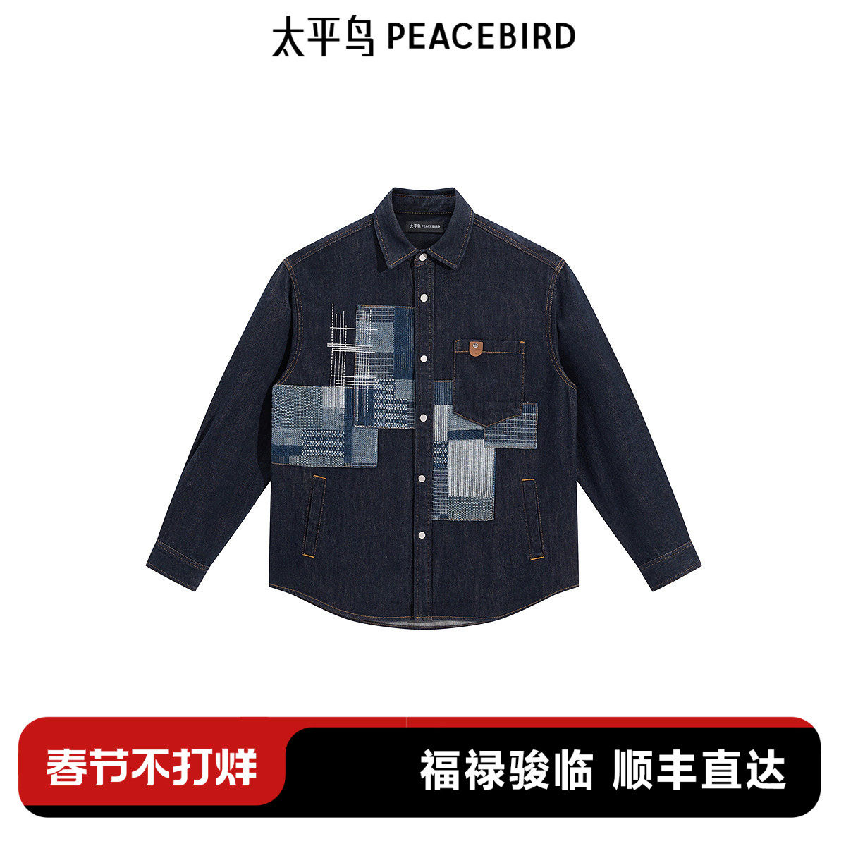 - 纯色牛仔衬衫男