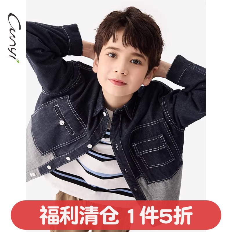 Cunyi纯一良品童装男童牛仔衬衫春秋新款中大童潮酷百搭纯棉外套