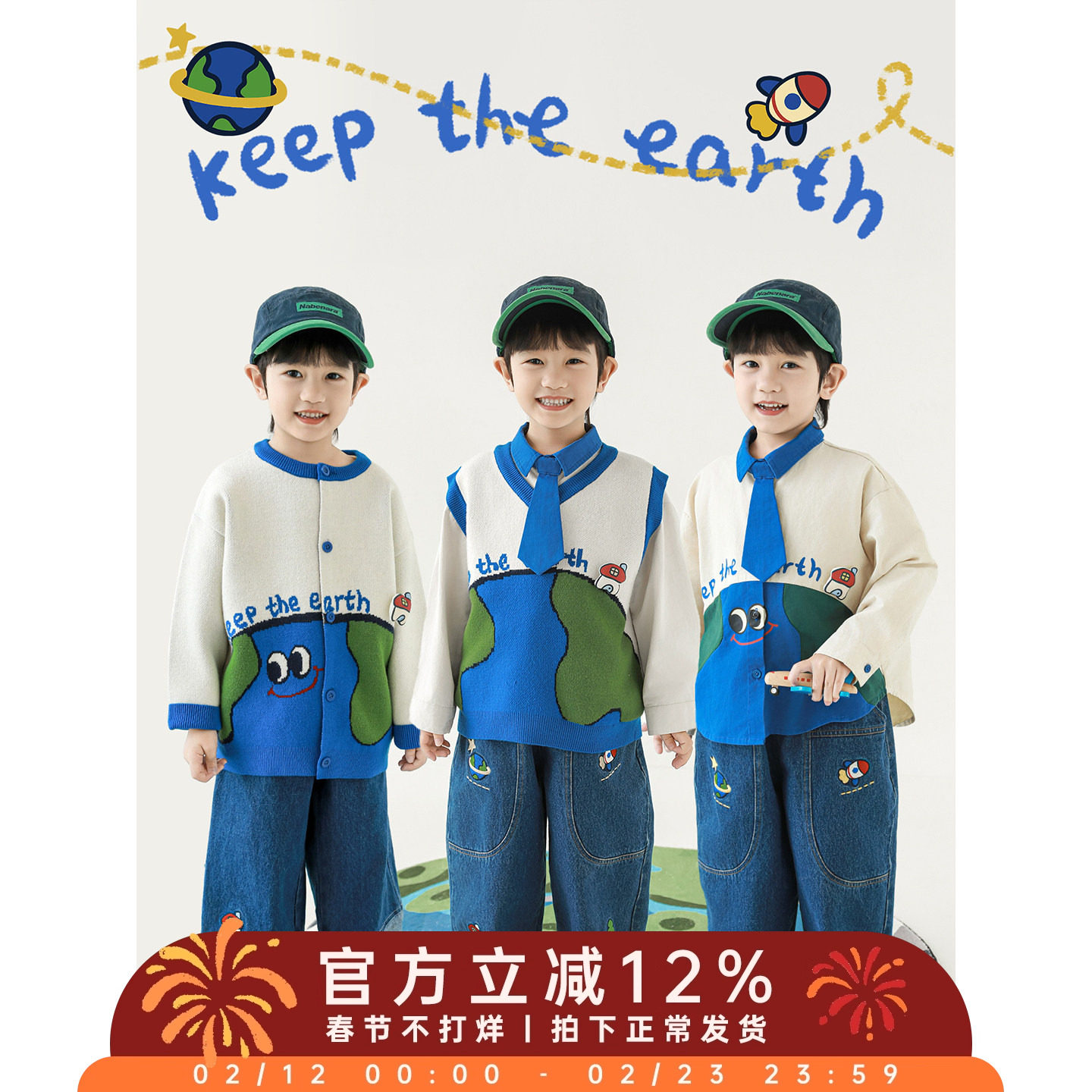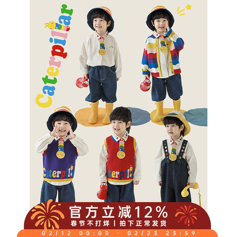 幼悠男童2026新款长袖毛衣衬衫无袖背心宽松牛仔裤彩虹系列套装潮