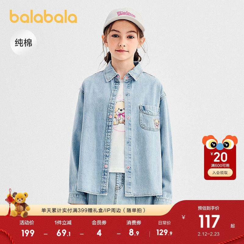 巴拉巴拉童装男童长袖衬衫儿童上衣2025新考春秋装纯棉牛仔时尚潮