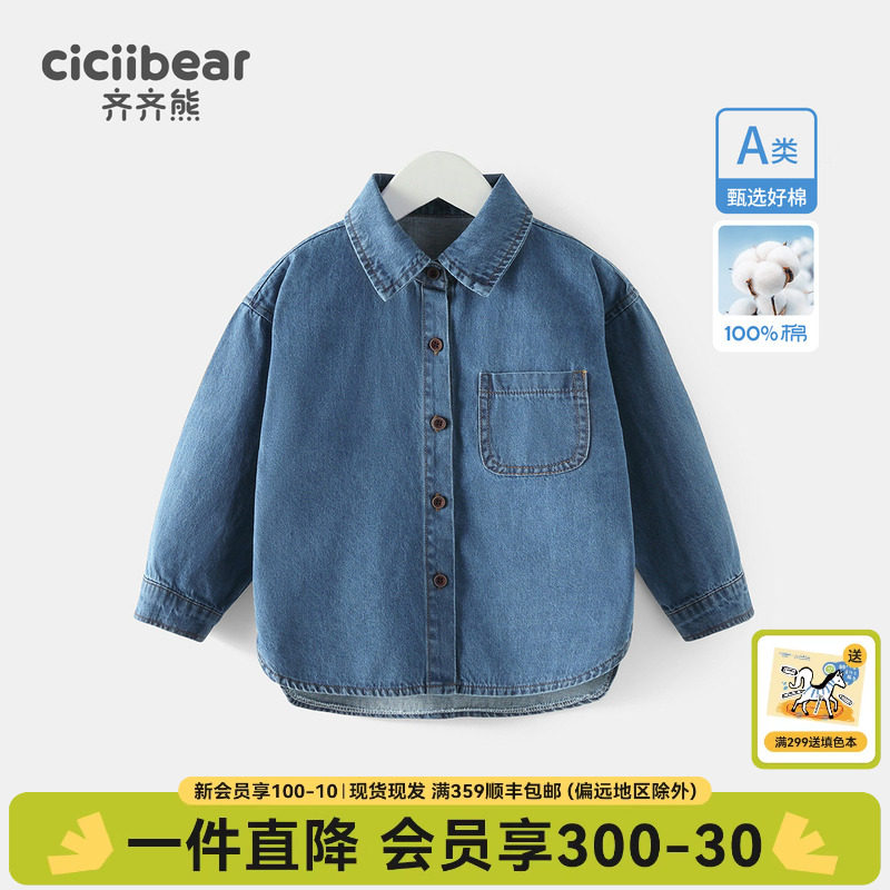 齐齐熊男童牛仔衬衫纯棉儿童春秋童装上衣宝宝休闲衬衣外套春装潮