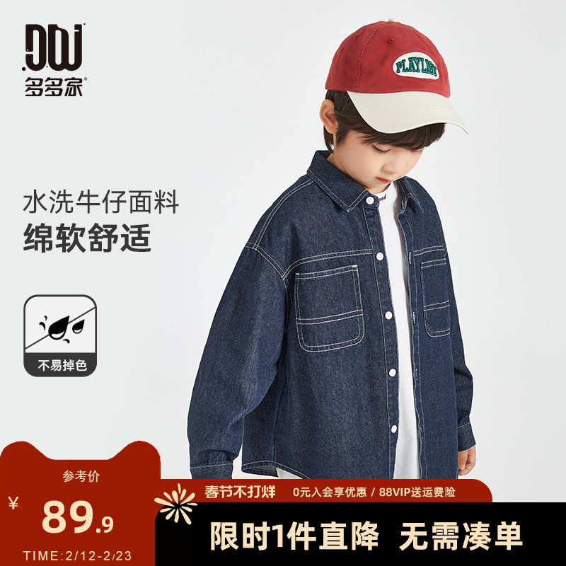 嘟嘟家儿童衬衫宝宝春季牛仔上衣男童新款外套女童衣服婴儿童装潮