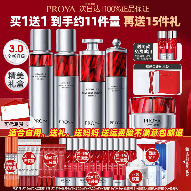 珀莱雅护肤品套装红宝石水乳精华霜补水保湿紧致抗皱礼盒化妆品女