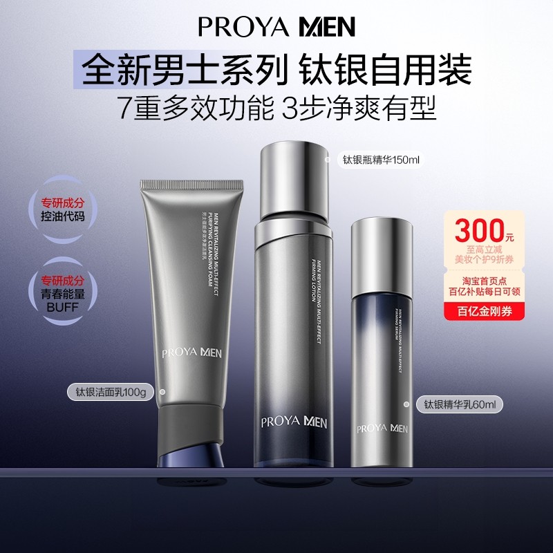 【百亿补贴】珀莱雅男士护肤套装自用钛银瓶精华露洗面奶水乳控油