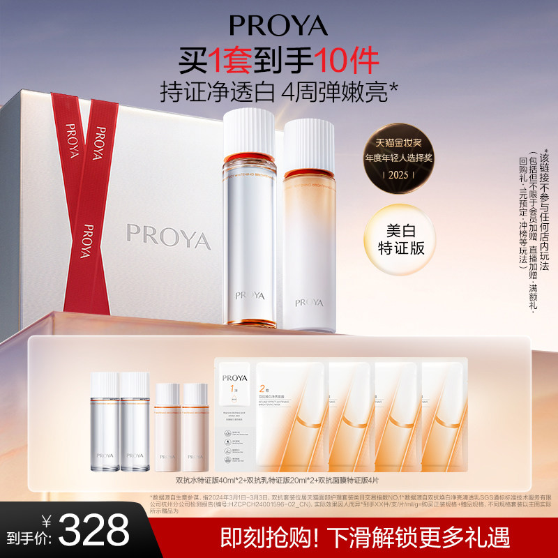 【闪购】珀莱雅双抗水乳套装护肤品美白补水保湿提亮紧致礼盒化妆