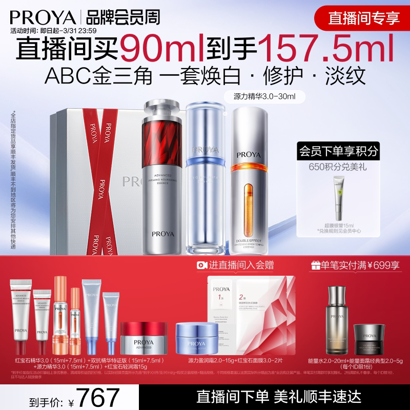 【直播专享】珀莱雅ABC组合双抗红宝石源力精华抗皱护肤品套装
