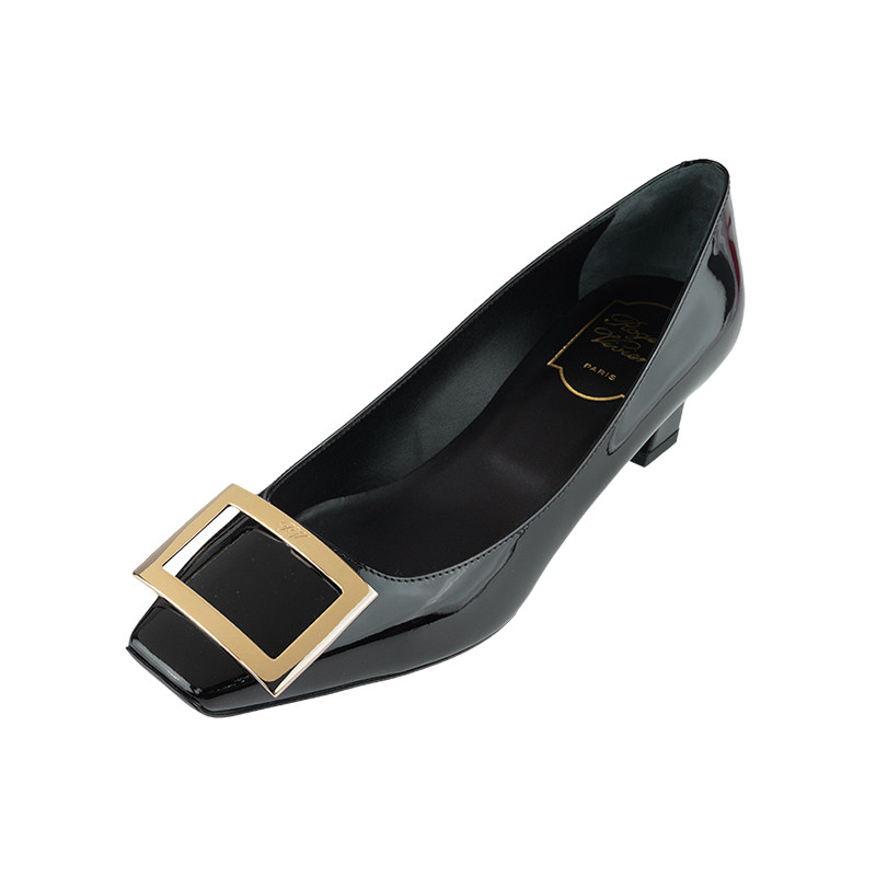 RV方扣rv单鞋漆皮粗跟女鞋高跟中跟婚鞋平底方头4.5CM/7CM马蹄跟