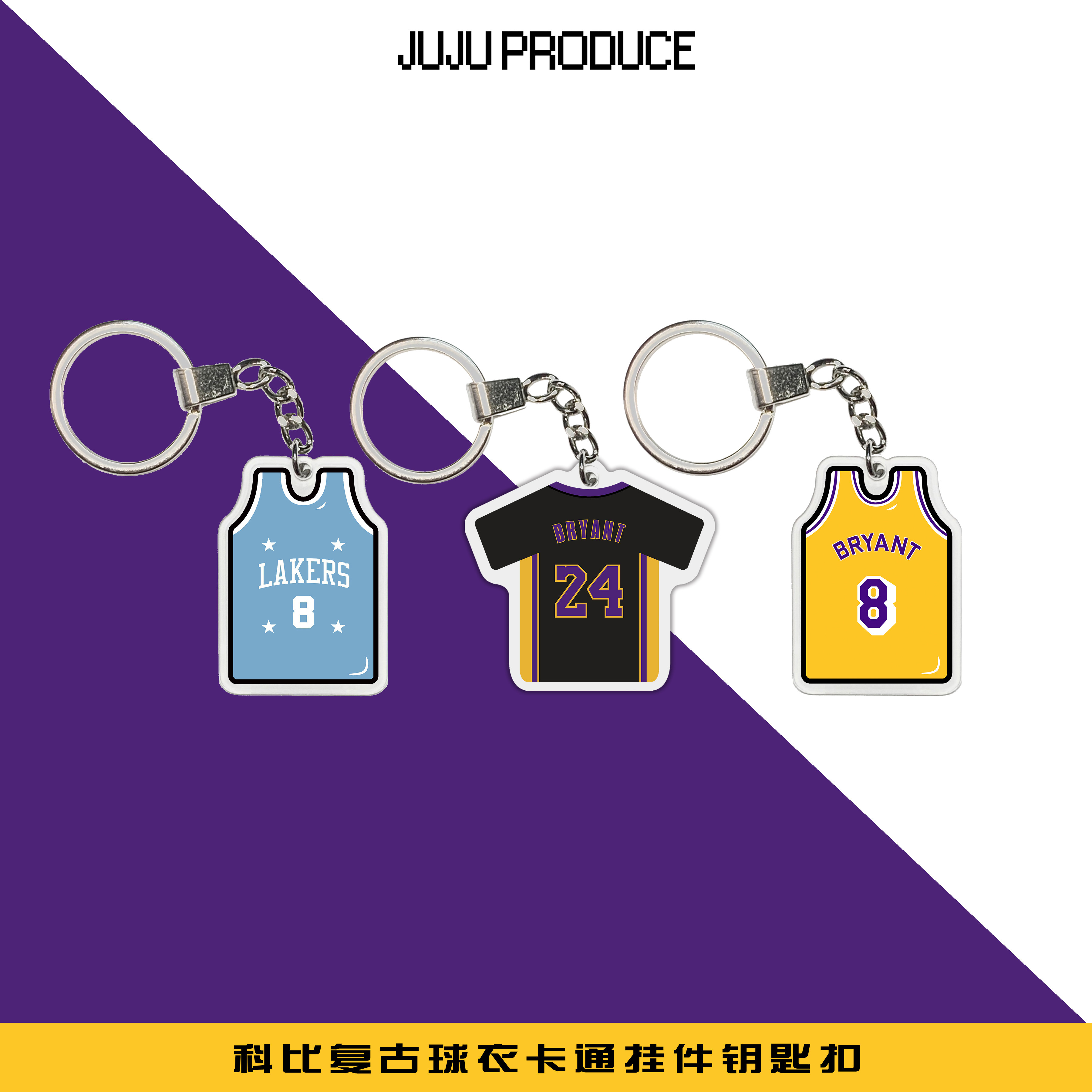科比湖人好莱坞复古钥匙扣卡通球衣创意车挂饰球迷礼物背包链挂件