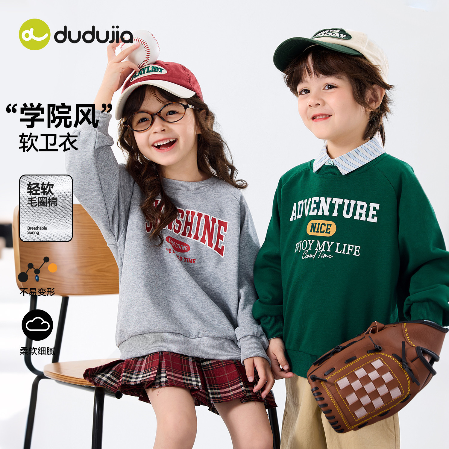 嘟嘟家男童卫衣春季儿童上衣女童春装长袖洋气男童2026新款学院风