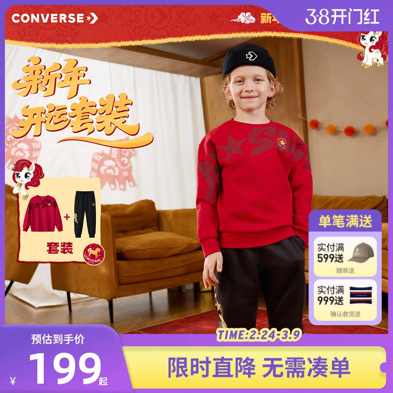 【新年红色套装】匡威儿童卫衣长裤2件套男童女童运动装拜年服潮