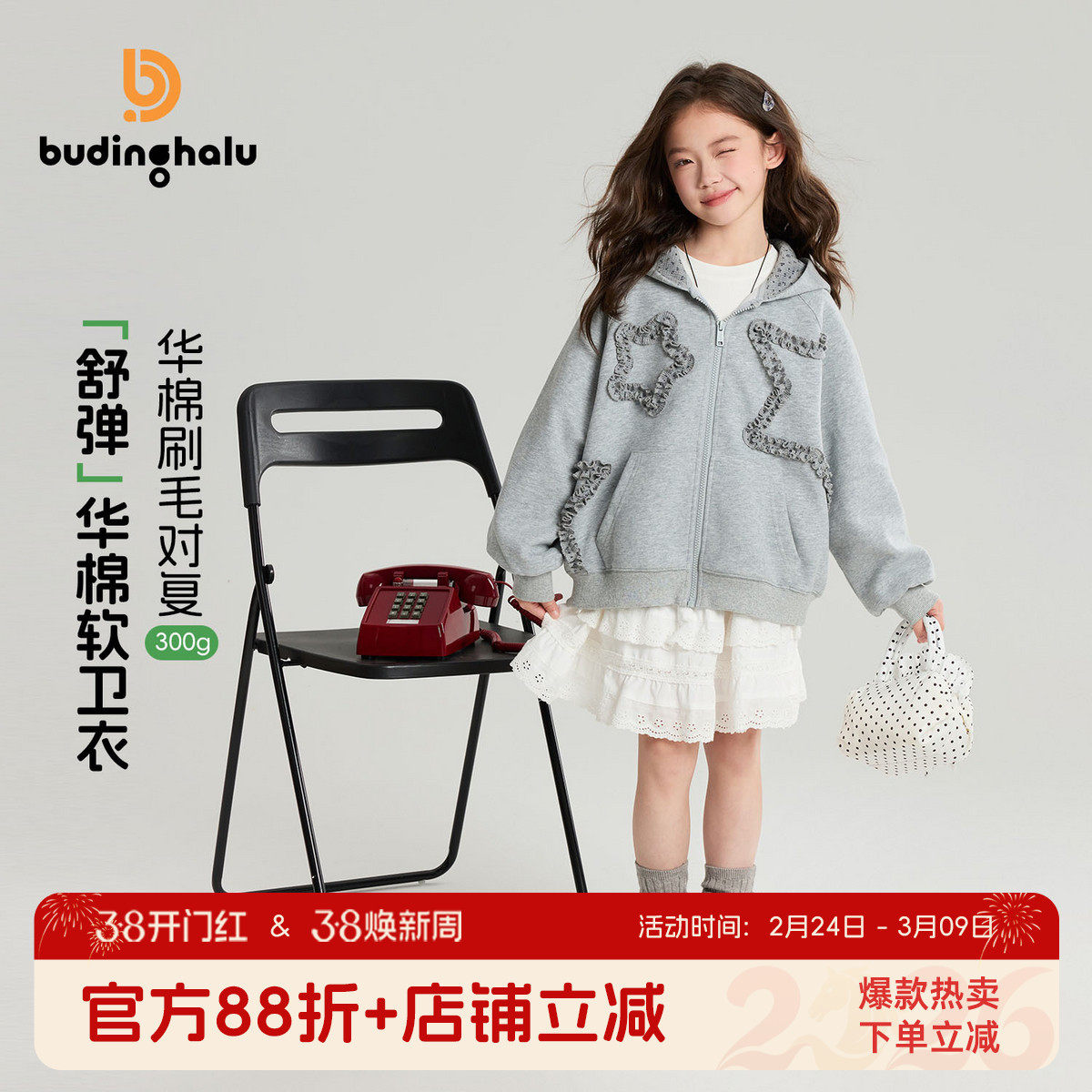 布丁哈鲁春装女童童装洋气上衣2026春季新款儿童百搭卫衣外套