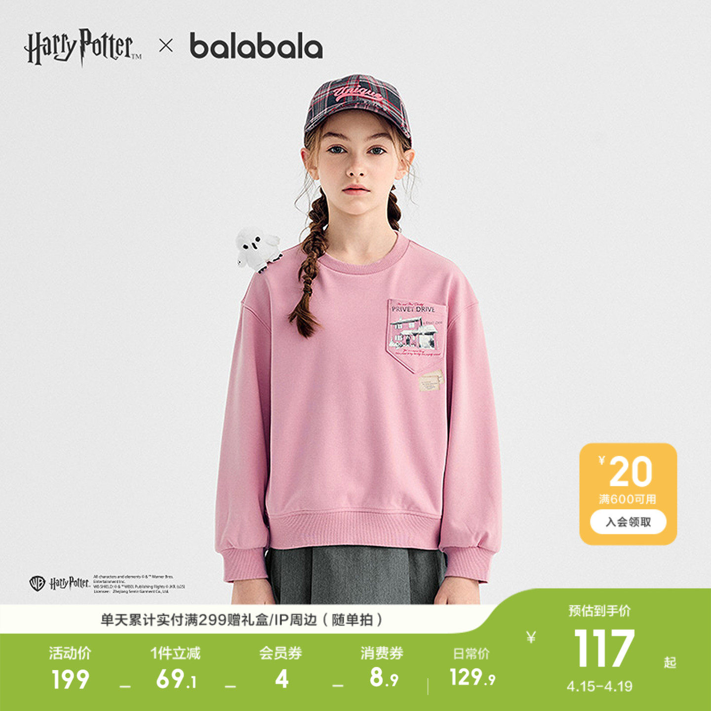【哈利波特IP】巴拉巴拉童装儿童卫衣女童2026春休闲t恤运动潮