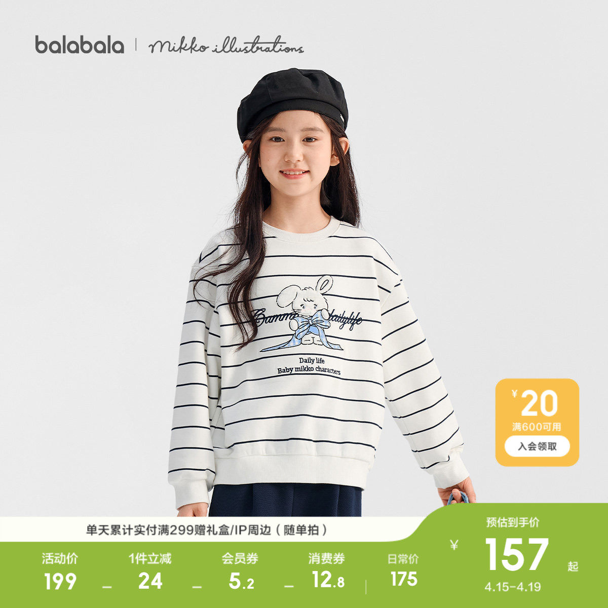 【mikkoIP商场同款】巴拉巴拉童装儿童卫衣长袖女童2026新款春装