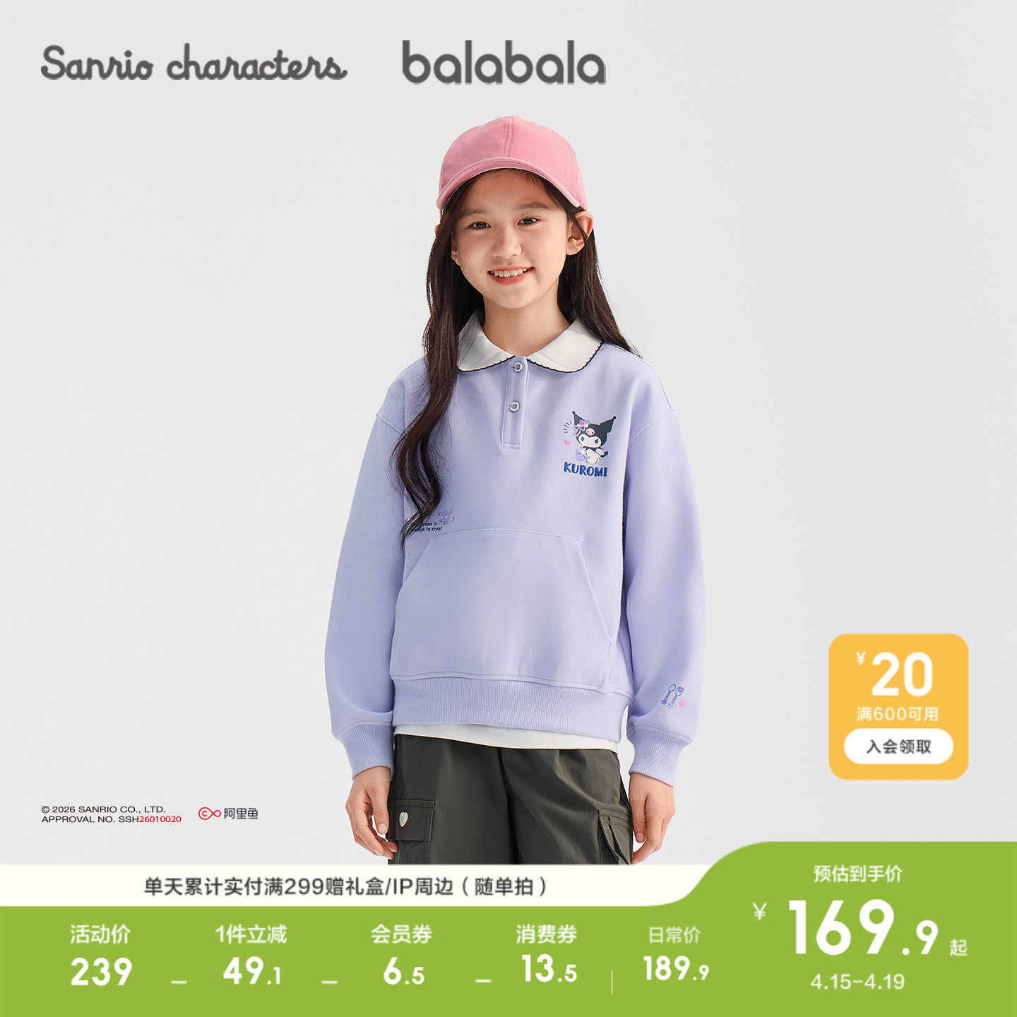 【库洛米IP商场同款】巴拉巴拉童装儿童卫衣长袖女童2026新款春装