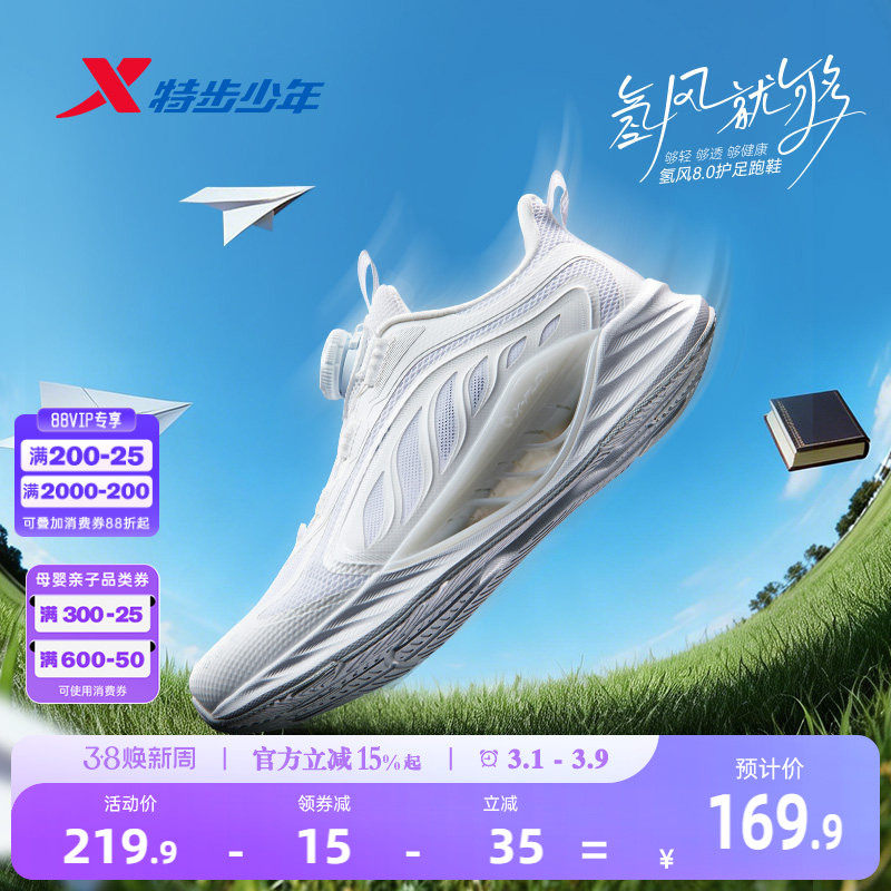 【氢风8.0护足跑鞋】特步童鞋男童运动鞋白色儿童跑步鞋男孩鞋子