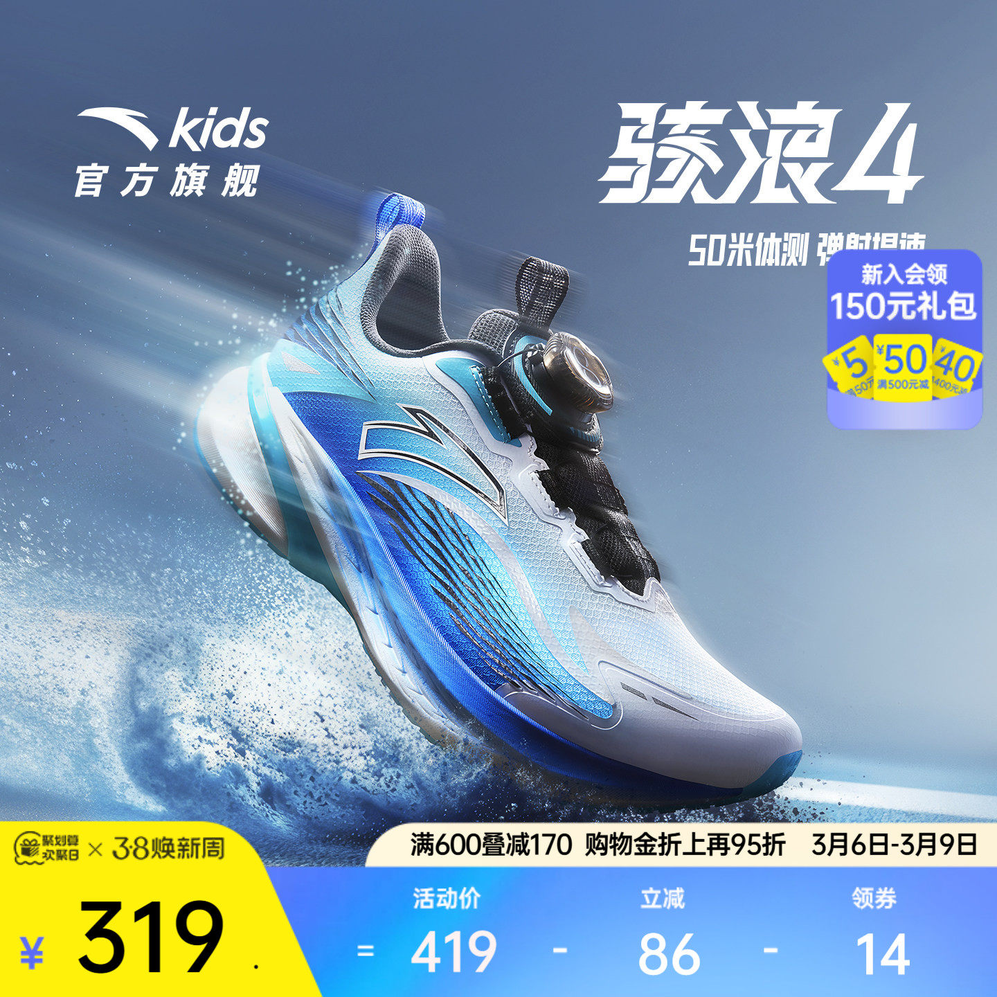 安踏骇浪4丨儿童男女大童跑鞋2026新款耐磨中大童校园跑运动鞋