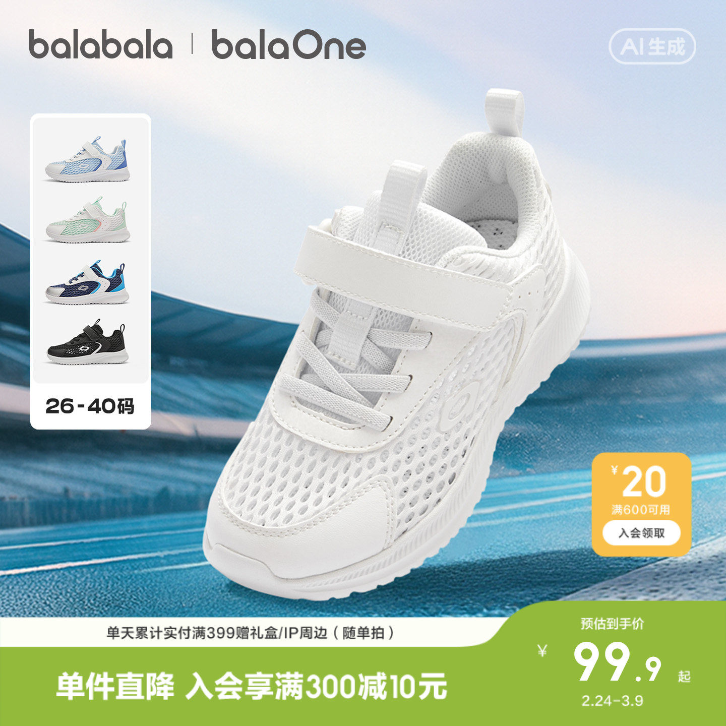 巴拉巴拉童鞋儿童运动鞋男女童2026夏季新透气网面大孔轻便跑鞋子