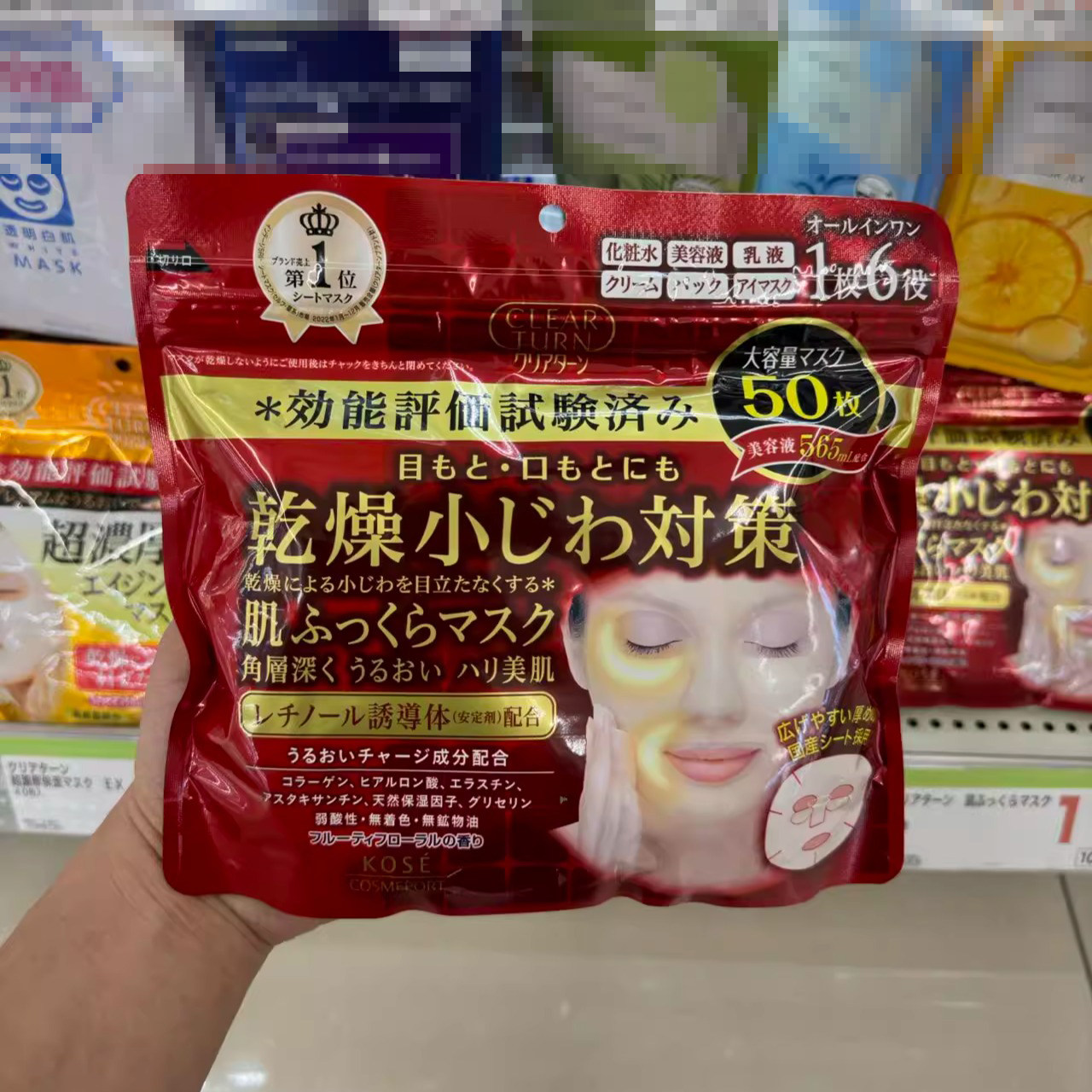 现货!日本本土KOSE高丝六合一面膜红色深层补水浸润淡化细纹50片