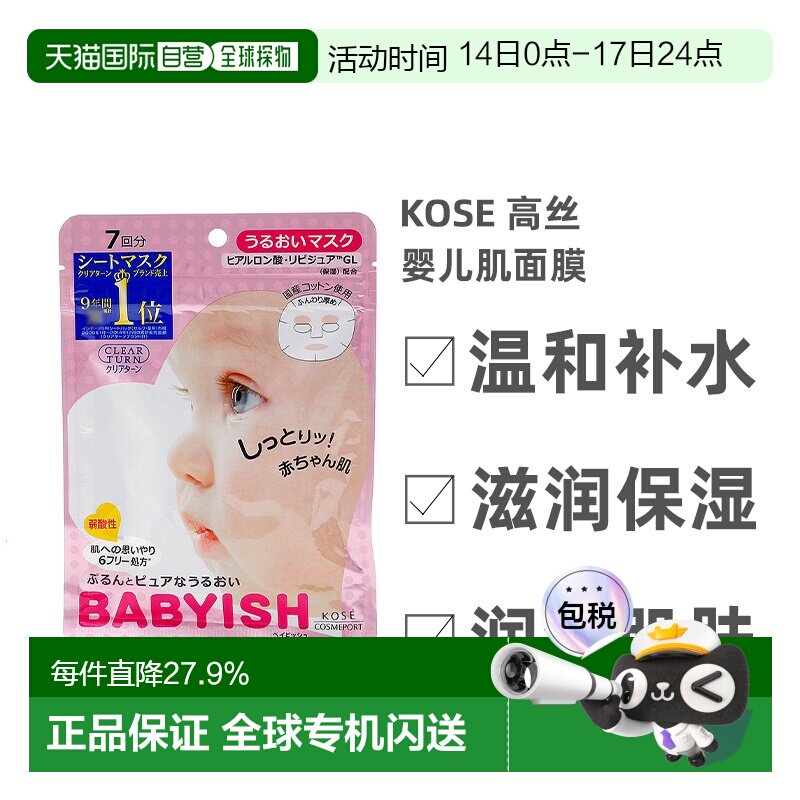 日本Kose高丝babyish婴儿肌面膜正品补水保湿7片学生女敏感肌孕妇