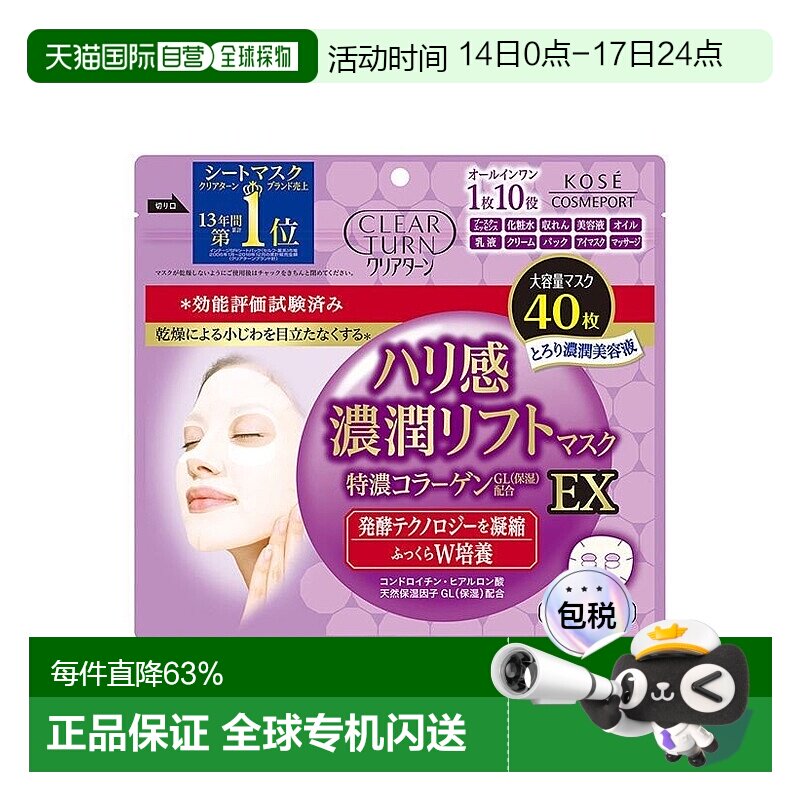 日本直邮高丝(KOSE)浓厚 液保湿面膜EX 40片/包胶原蛋白提亮