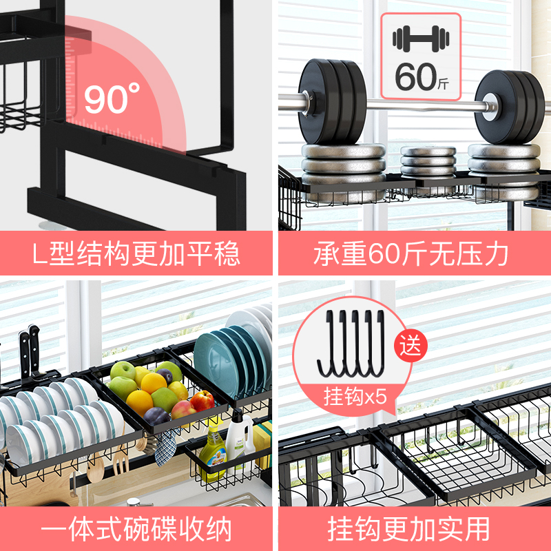 可伸缩厨房水槽上方置物架碗架沥水架碗碟架台面多功能碗盘收纳架