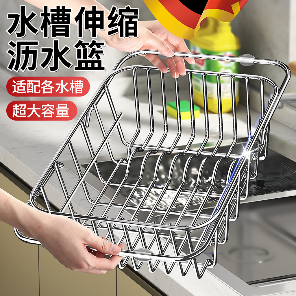 水槽沥水篮厨房不锈钢洗碗池洗菜盆伸缩置物架碗碟收纳架厨房用品