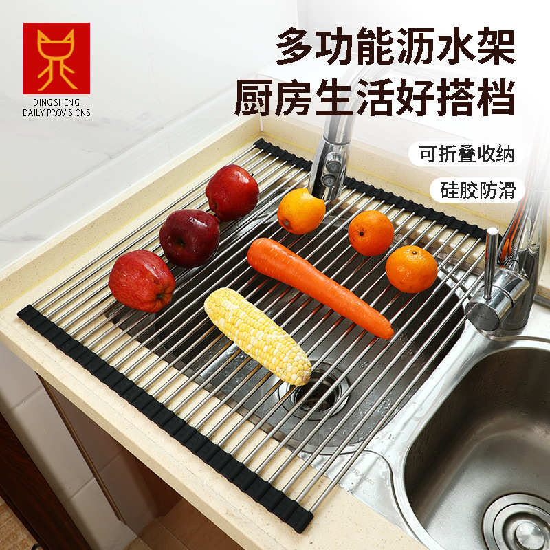 304不锈钢沥水架碗碟架水槽沥水帘硅胶滤水垫洗碗池可折叠卷帘架