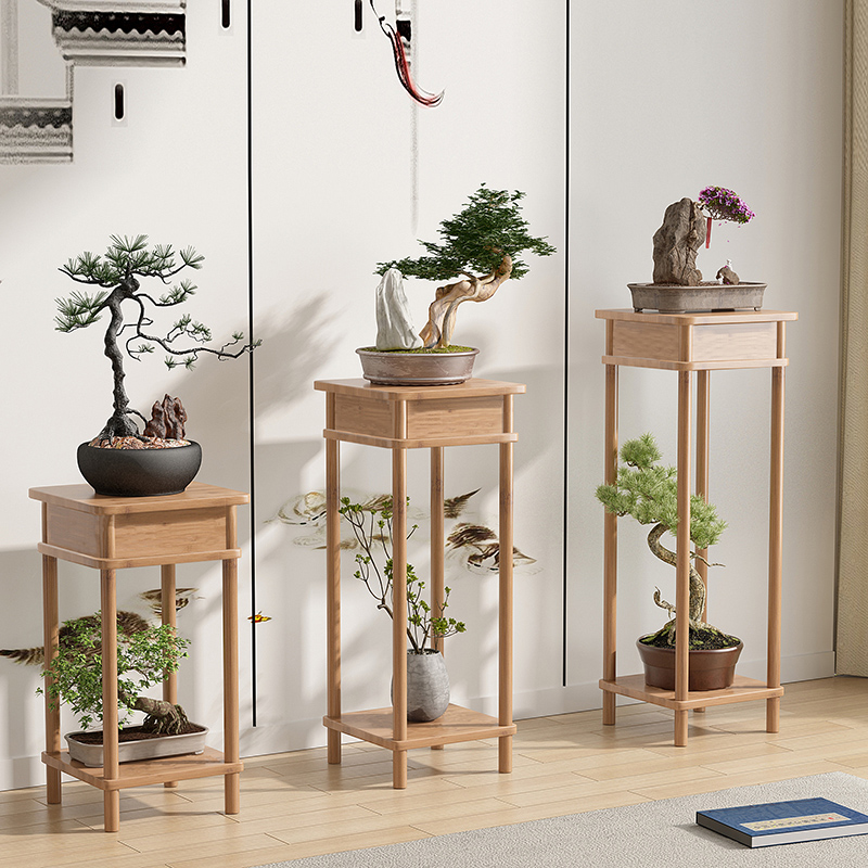 特价实木花架榆木中式植物木头整装方形盆景木制落地式绿萝花架子
