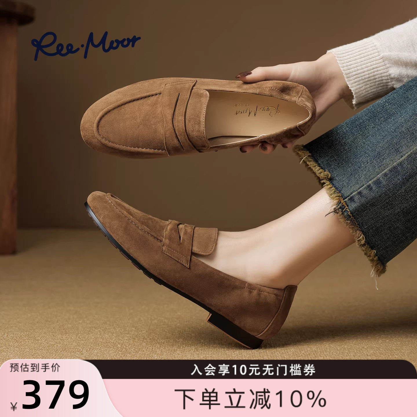 REEMOOR睿慕2026春季新款英伦风小皮鞋女圆头厚底乐福鞋平底单鞋