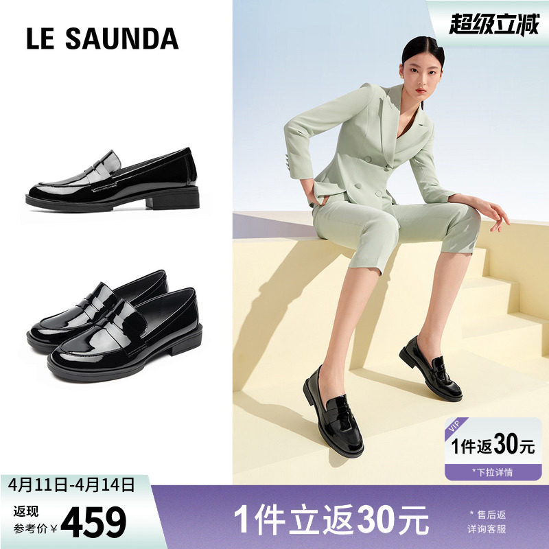 沙驰女鞋乐福鞋女款英伦风小皮鞋2026春夏新款低跟圆头深口单鞋子