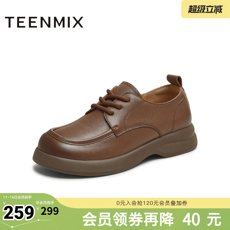 天美意春新款厚底圆头牛津鞋复古英伦小皮鞋女单鞋KY018CM5