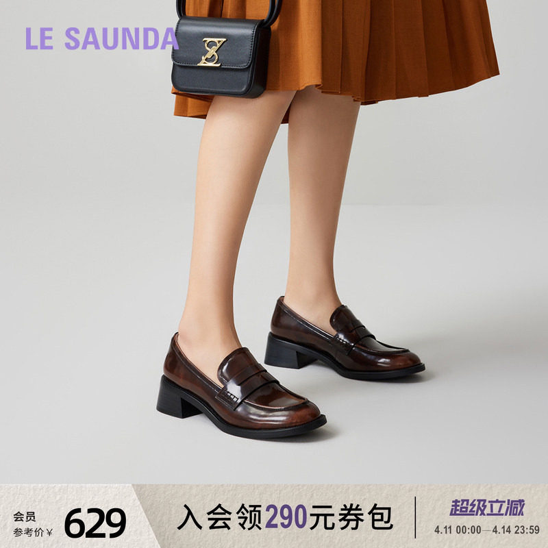 莱尔斯丹莱福家族春夏新款圆头英伦真皮复古中跟乐福女单鞋41901