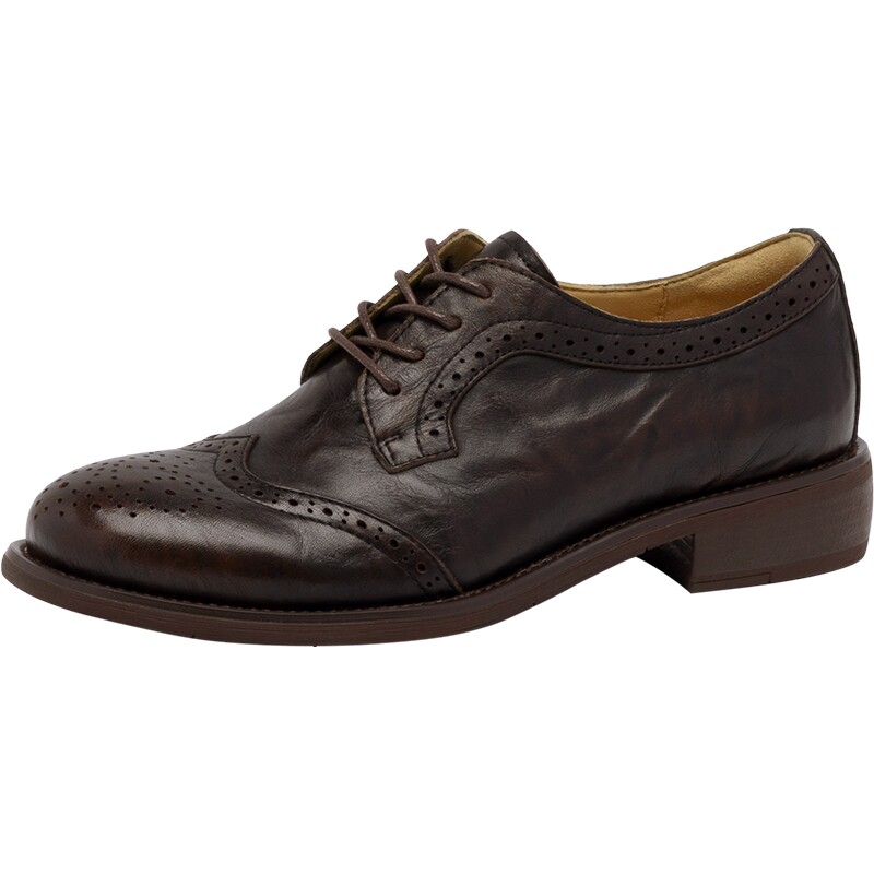 30725复古单鞋女软底头层牛皮英伦风圆头低跟休闲舒适春秋款皮鞋